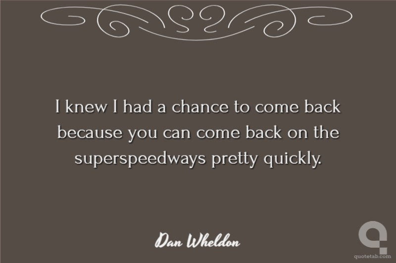 I knew I had a chance to come back because you can come back on the superspeedways pretty quickly.