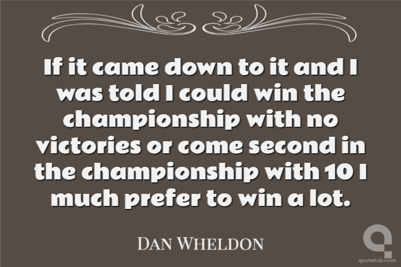 If it came down to it and I was told that I could win the championship with no victories or come second in the championship with 10, that's the kind of guy I am. I much prefer to win a lot.