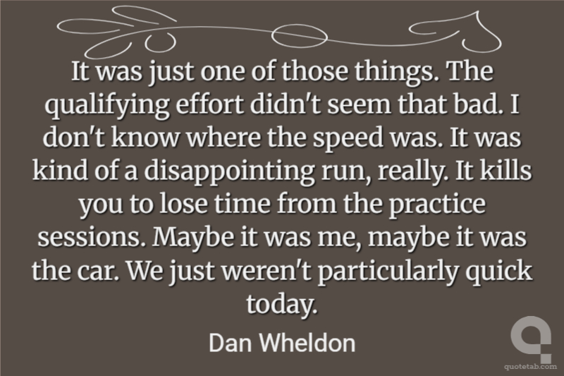 It was just one of those things. The qualifying effort didn't seem that bad. I don't know where the speed was. It was kind of a disappointing run, really. It kills you to lose time from the practice sessions. Maybe it was me, maybe it was the car. We just weren't particularly quick today.