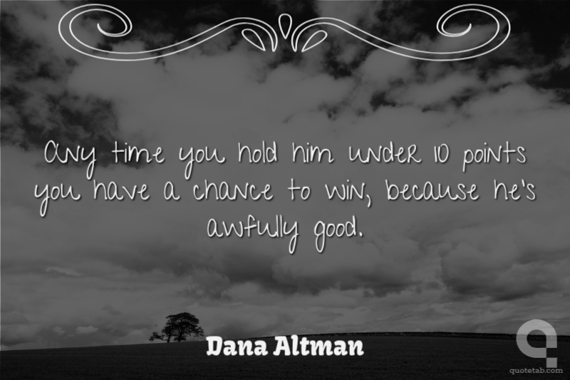 Any time you hold him under 10 points you have a chance to win, because he's awfully good.