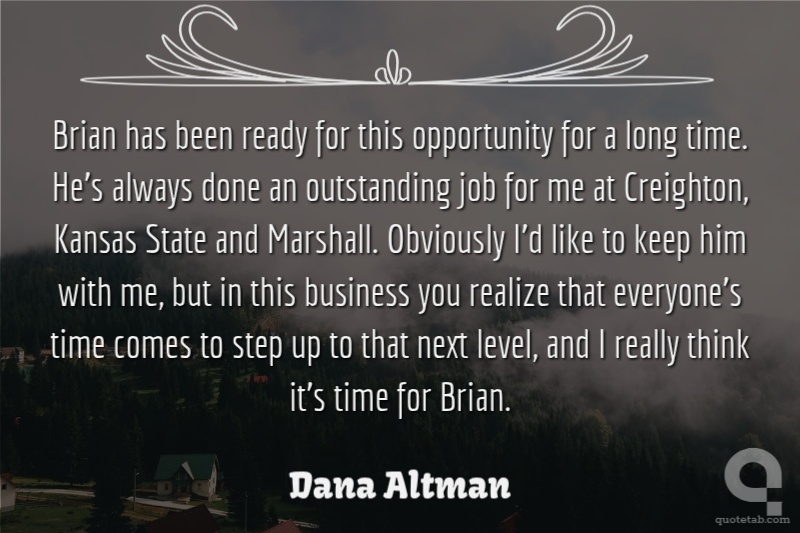 Brian has been ready for this opportunity for a long time. He's always done an outstanding job for me at Creighton, Kansas State and Marshall. Obviously I'd like to keep him with me, but in this business you realize that everyone's time comes to step up to that next level, and I really think it's time for Brian.