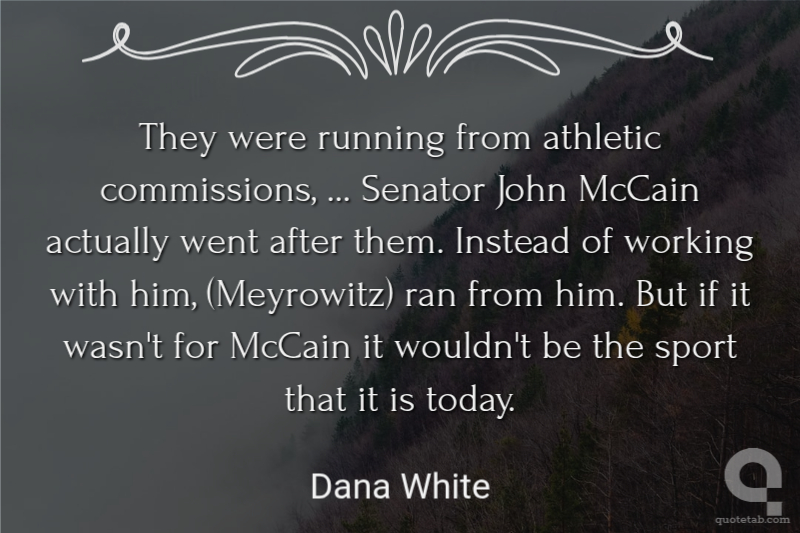 They were running from athletic commissions, ... Senator John McCain actually went after them. Instead of working with him, (Meyrowitz) ran from him. But if it wasn't for McCain it wouldn't be the sport that it is today.