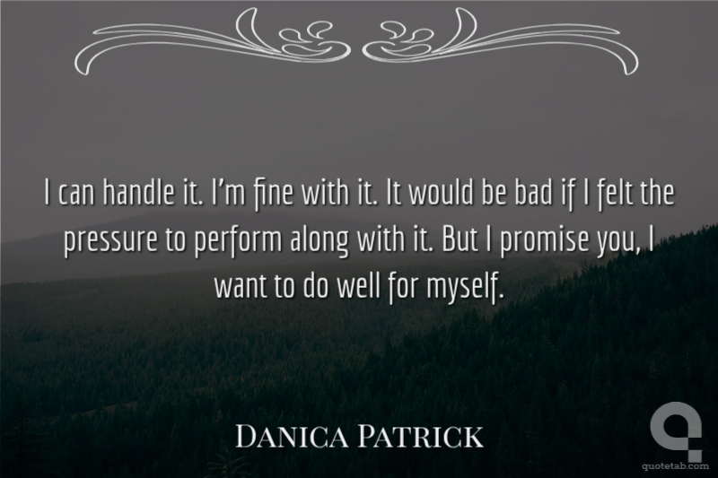 I can handle it. I'm fine with it. It would be bad if I felt the pressure to perform along with it. But I promise you, I want to do well for myself.