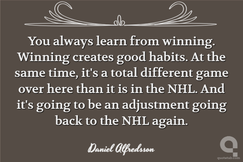 You always learn from winning. Winning creates good habits. At the same time, it's a total different game over here than it is in the NHL. And it's going to be an adjustment going back to the NHL again.