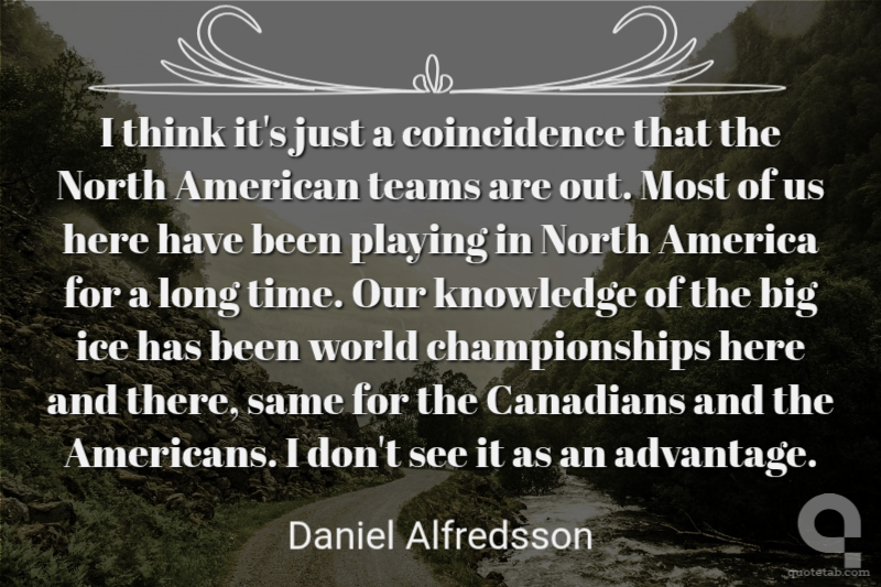 I think it's just a coincidence that the North American teams are out. Most of us here have been playing in North America for a long time. Our knowledge of the big ice has been world championships here and there, same for the Canadians and the Americans. I don't see it as an advantage.