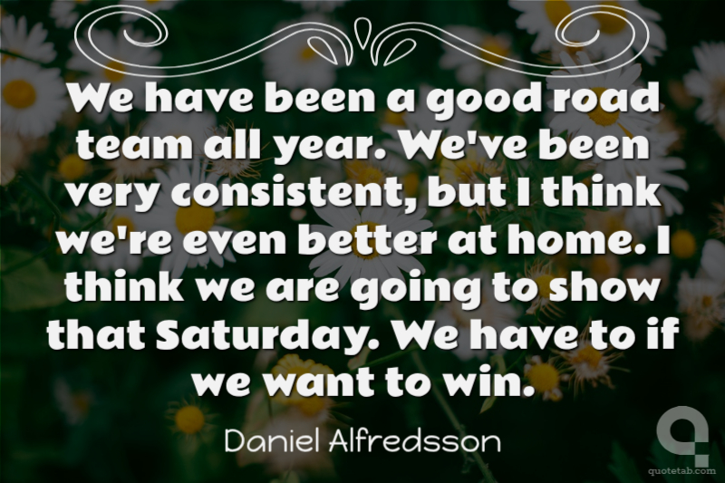 We have been a good road team all year. We've been very consistent, but I think we're even better at home. I think we are going to show that Saturday. We have to if we want to win.