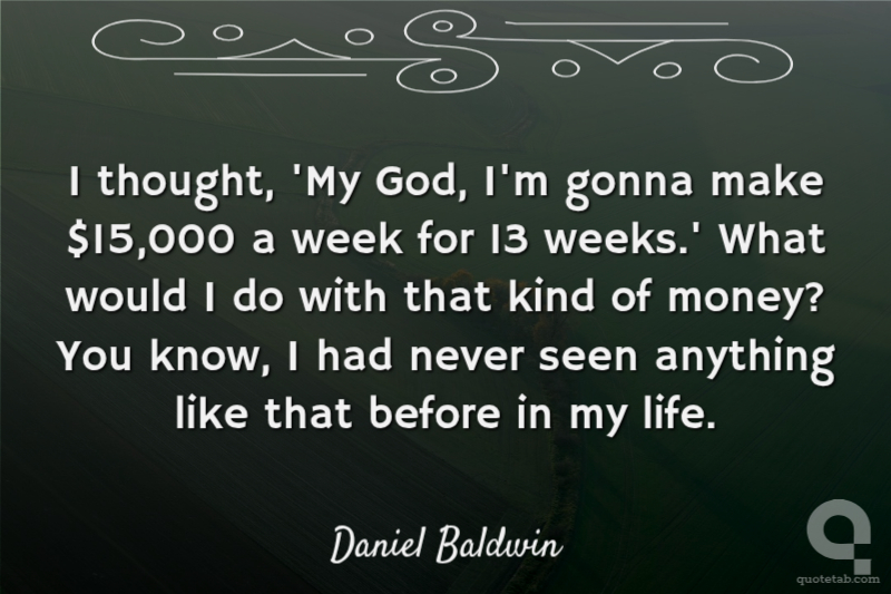 I thought, 'My God, I'm gonna make $15,000 a week for 13 weeks.' What would I do with that kind of money? You know, I had never seen anything like that before in my life.