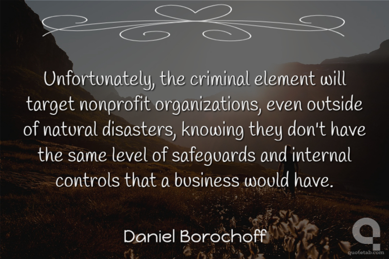 Unfortunately, the criminal element will target nonprofit organizations, even outside of natural disasters, knowing they don't have the same level of safeguards and internal controls that a business would have.