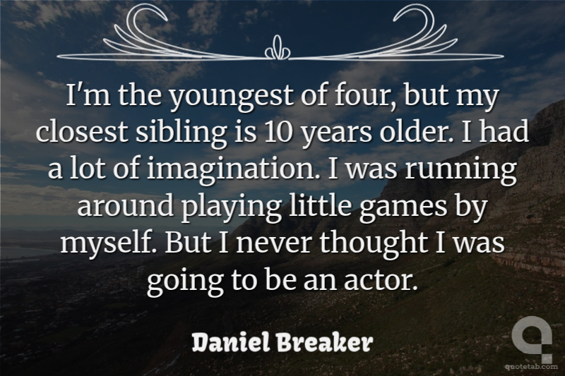 I'm the youngest of four, but my closest sibling is 10 years older. I had a lot of imagination. I was running around playing little games by myself. But I never thought I was going to be an actor.