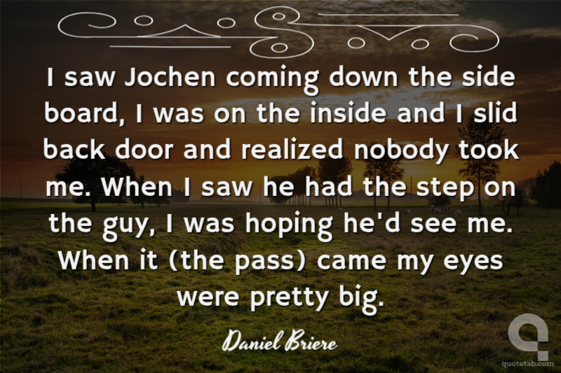 I saw Jochen coming down the side board, I was on the inside and I slid back door and realized nobody took me. When I saw he had the step on the guy, I was hoping he'd see me. When it (the pass) came my eyes were pretty big.