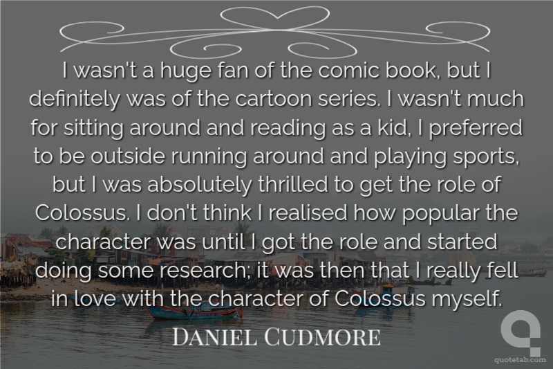 I wasn't a huge fan of the comic book, but I definitely was of the cartoon series. I wasn't much for sitting around and reading as a kid, I preferred to be outside running around and playing sports, but I was absolutely thrilled to get the role of Colossus. I don't think I realised how popular the character was until I got the role and started doing some research; it was then that I really fell in love with the character of Colossus myself.