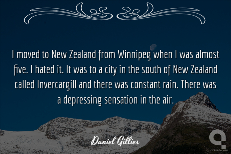 I moved to New Zealand from Winnipeg when I was almost five. I hated it. It was to a city in the south of New Zealand called Invercargill and there was constant rain. There was a depressing sensation in the air.