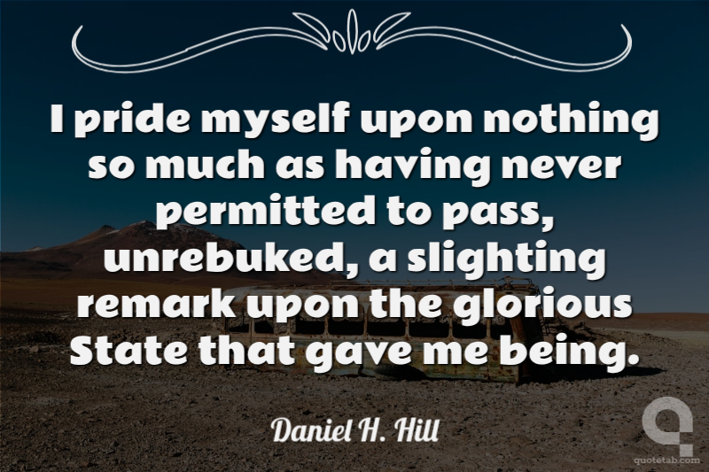 I pride myself upon nothing so much as having never permitted to pass, unrebuked, a slighting remark upon the glorious State that gave me being.