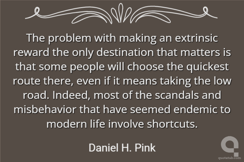 The problem with making an extrinsic reward the only destination that matters is that some people will choose the quickest route there, even if it means taking the low road. Indeed, most of the scandals and misbehavior that have seemed endemic to modern life involve shortcuts.