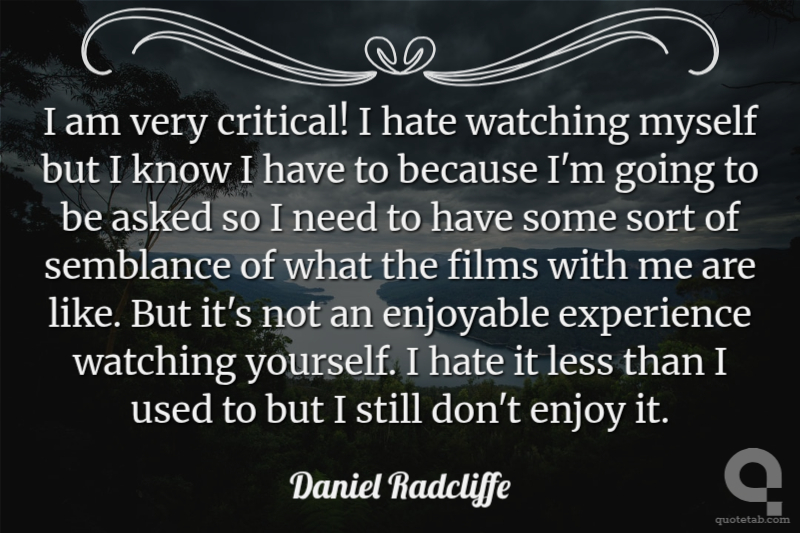 I am very critical! I hate watching myself but I know I have to because I'm going to be asked so I need to have some sort of semblance of what the films with me are like. But it's not an enjoyable experience watching yourself. I hate it less than I used to but I still don't enjoy it.