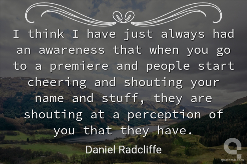 I think I have just always had an awareness that when you go to a premiere and people start cheering and shouting your name and stuff, they are shouting at a perception of you that they have.