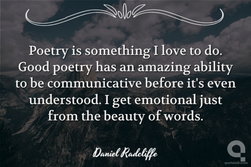 Poetry is something I love to do. Good poetry has an amazing ability to be communicative before it's even understood. I get emotional just from the beauty of words.