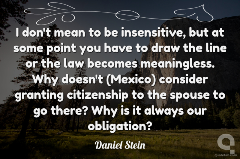 I don't mean to be insensitive, but at some point you have to draw the line or the law becomes meaningless. Why doesn't (Mexico) consider granting citizenship to the spouse to go there? Why is it always our obligation?