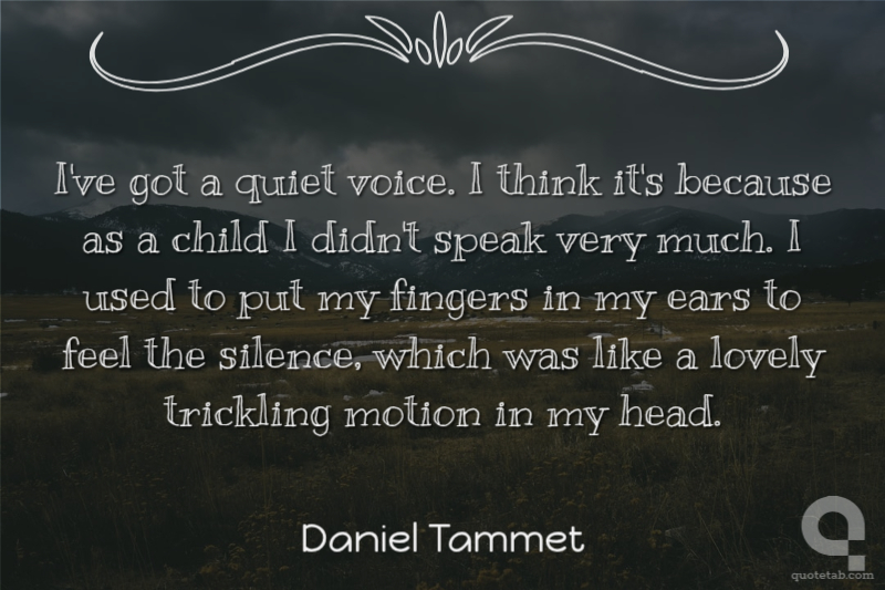 I've got a quiet voice. I think it's because as a child I didn't speak very much. I used to put my fingers in my ears to feel the silence, which was like a lovely trickling motion in my head.