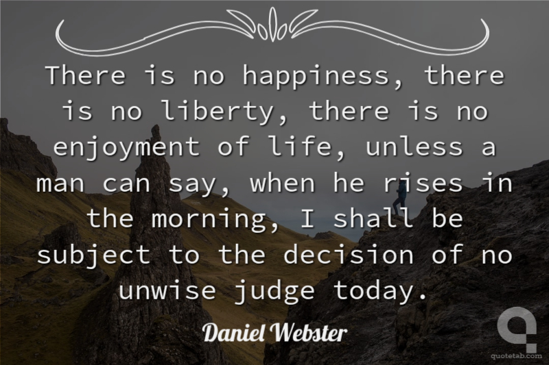There is no happiness, there is no liberty, there is no enjoyment of life, unless a man can say, when he rises in the morning, I shall be subject to the decision of no unwise judge today.