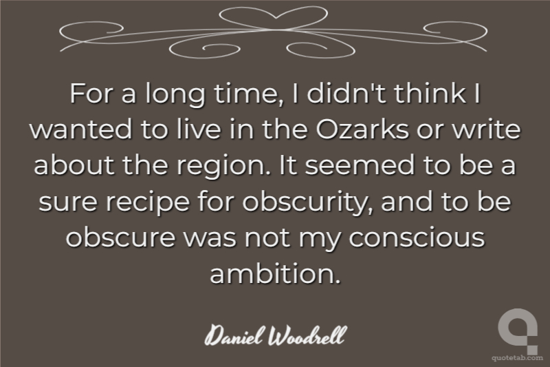 For a long time, I didn't think I wanted to live in the Ozarks or write about the region. It seemed to be a sure recipe for obscurity, and to be obscure was not my conscious ambition.
