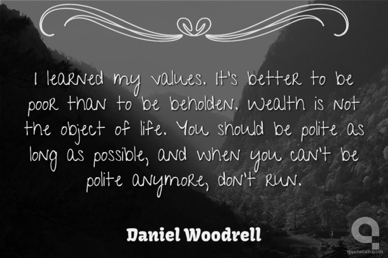 I learned my values. It's better to be poor than to be beholden. Wealth is not the object of life. You should be polite as long as possible, and when you can't be polite anymore, don't run.