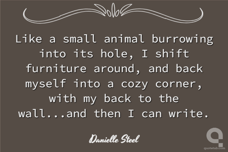 Like a small animal burrowing into its hole, I shift furniture around, and back myself into a cozy corner, with my back to the wall...and then I can write.
