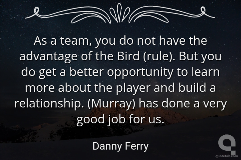 As a team, you do not have the advantage of the Bird (rule). But you do get a better opportunity to learn more about the player and build a relationship. (Murray) has done a very good job for us.