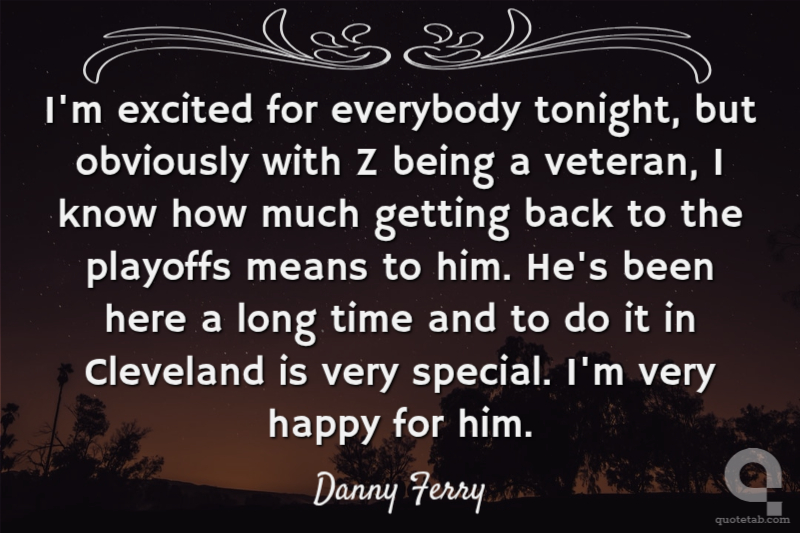 I'm excited for everybody tonight, but obviously with Z being a veteran, I know how much getting back to the playoffs means to him. He's been here a long time and to do it in Cleveland is very special. I'm very happy for him.