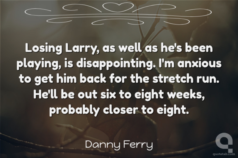 Losing Larry, as well as he's been playing, is disappointing. I'm anxious to get him back for the stretch run. He'll be out six to eight weeks, probably closer to eight.