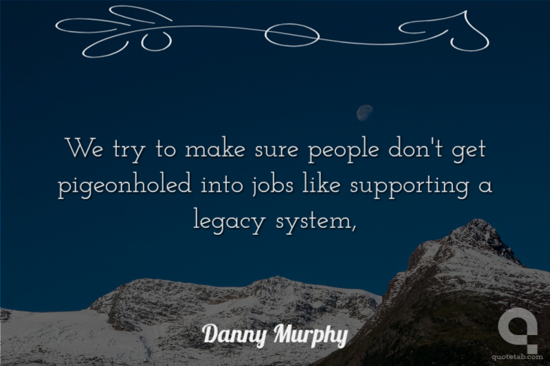 We try to make sure people don't get pigeonholed into jobs like supporting a legacy system,