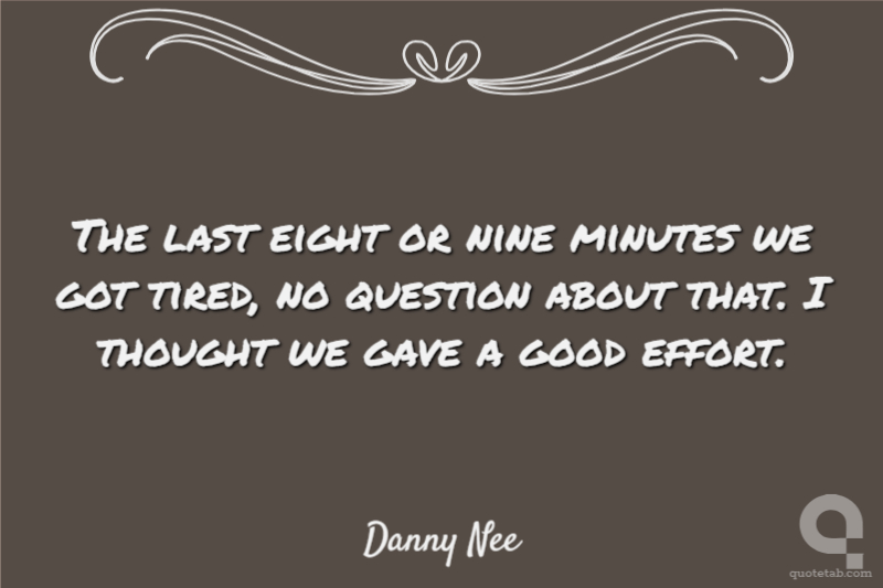 The last eight or nine minutes we got tired, no question about that. I thought we gave a good effort.
