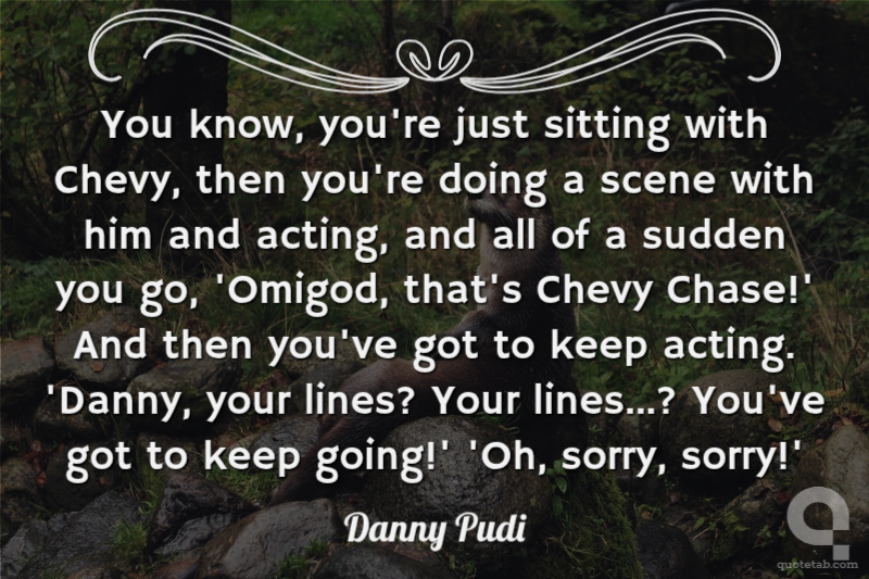 You know, you're just sitting with Chevy, then you're doing a scene with him and acting, and all of a sudden you go, 'Omigod, that's Chevy Chase!' And then you've got to keep acting. 'Danny, your lines? Your lines...? You've got to keep going!' 'Oh, sorry, sorry!'