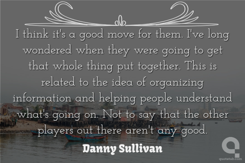 I think it's a good move for them. I've long wondered when they were going to get that whole thing put together. This is related to the idea of organizing information and helping people understand what's going on. Not to say that the other players out there aren't any good.