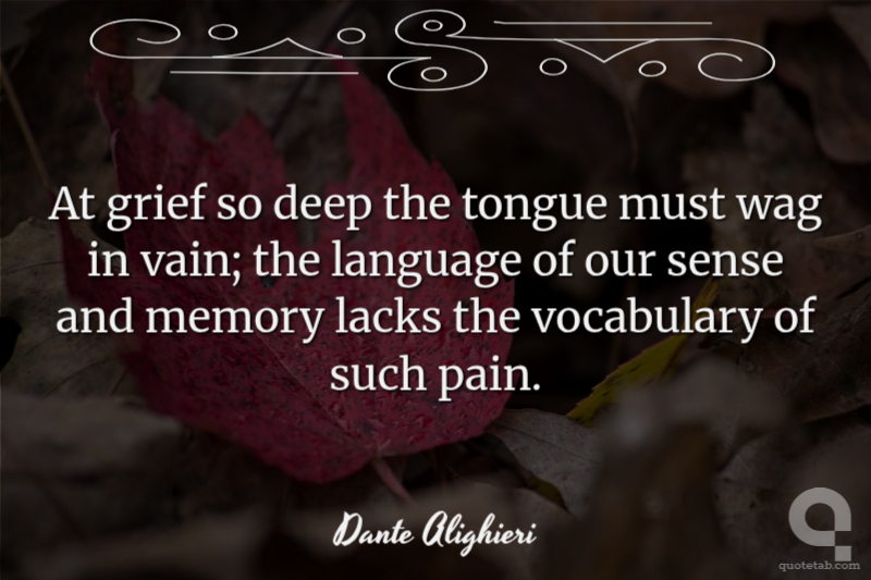 At grief so deep the tongue must wag in vain; the language of our sense and memory lacks the vocabulary of such pain.