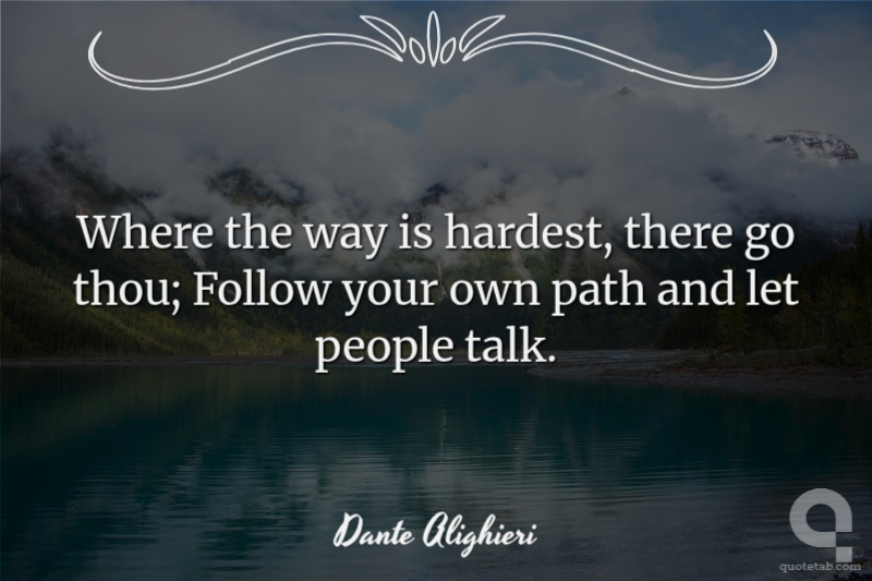 Where the way is hardest, there go thou; Follow your own path and let people talk.