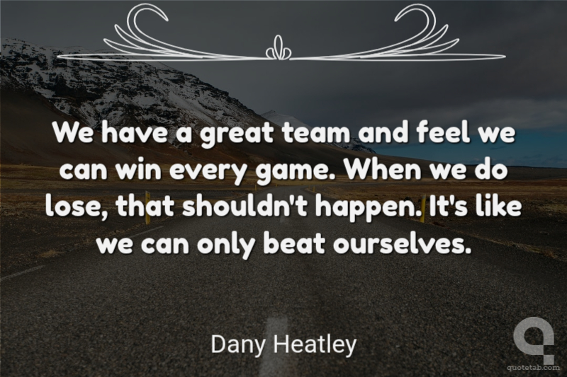 We have a great team and feel we can win every game. When we do lose, that shouldn't happen. It's like we can only beat ourselves.