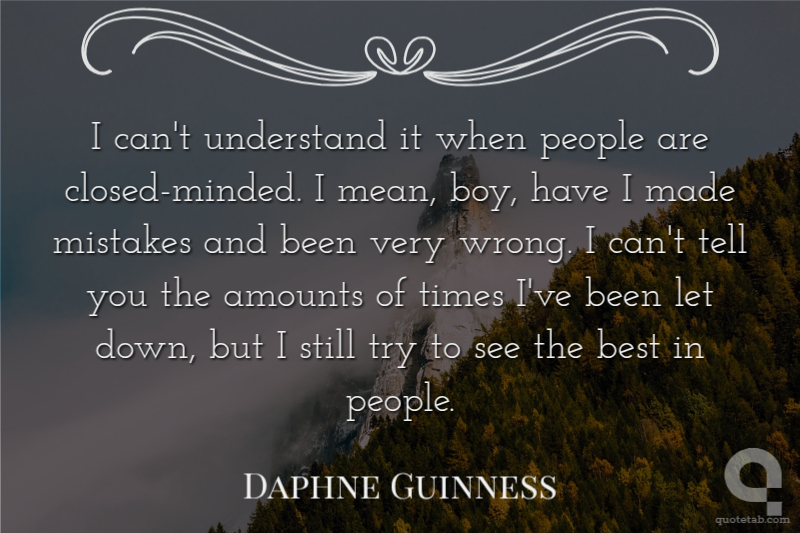 I can't understand it when people are closed-minded. I mean, boy, have I made mistakes and been very wrong. I can't tell you the amounts of times I've been let down, but I still try to see the best in people.