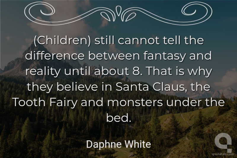 (Children) still cannot tell the difference between fantasy and reality until about 8. That is why they believe in Santa Claus, the Tooth Fairy and monsters under the bed.