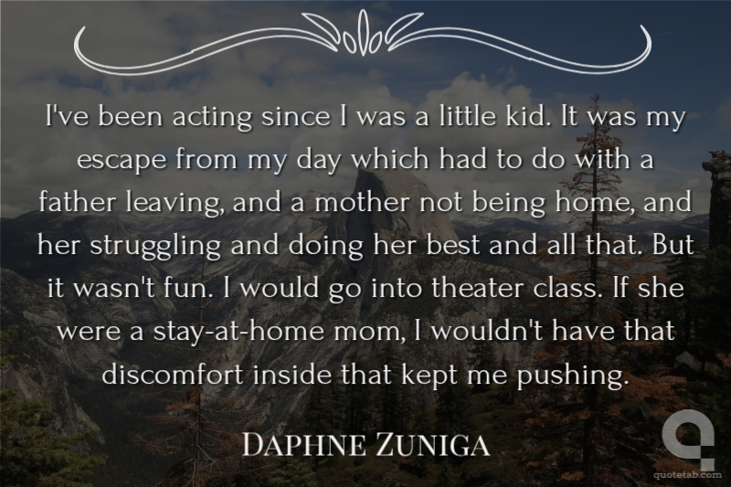 I've been acting since I was a little kid. It was my escape from my day which had to do with a father leaving, and a mother not being home, and her struggling and doing her best and all that. But it wasn't fun. I would go into theater class. If she were a stay-at-home mom, I wouldn't have that discomfort inside that kept me pushing.