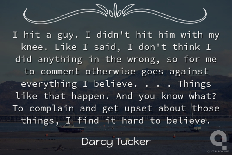 I hit a guy. I didn't hit him with my knee. Like I said, I don't think I did anything in the wrong, so for me to comment otherwise goes against everything I believe. . . . Things like that happen. And you know what? To complain and get upset about those things, I find it hard to believe.