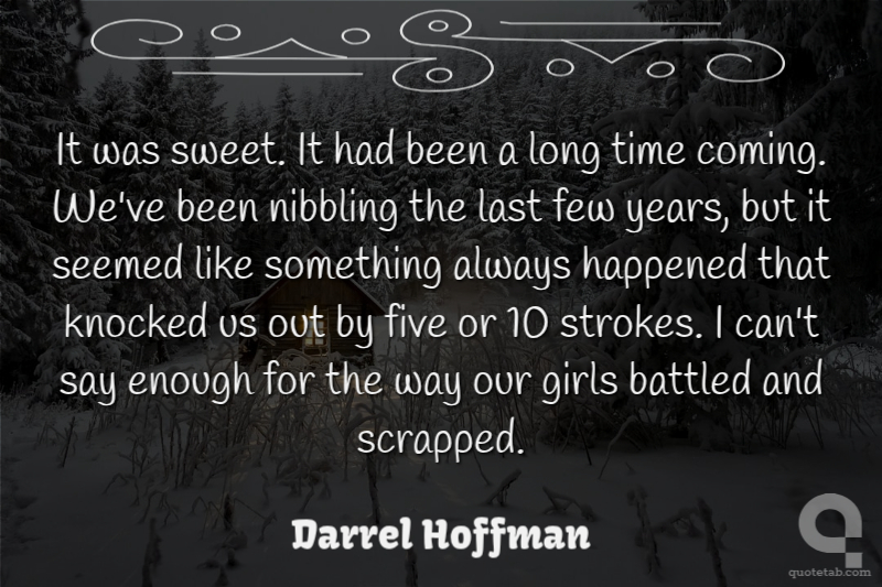 It was sweet. It had been a long time coming. We've been nibbling the last few years, but it seemed like something always happened that knocked us out by five or 10 strokes. I can't say enough for the way our girls battled and scrapped.