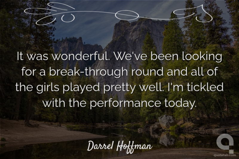 It was wonderful. We've been looking for a break-through round and all of the girls played pretty well. I'm tickled with the performance today.