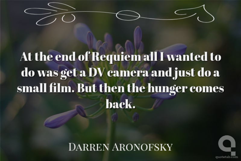 At the end of Requiem all I wanted to do was get a DV camera and just do a small film. But then the hunger comes back.