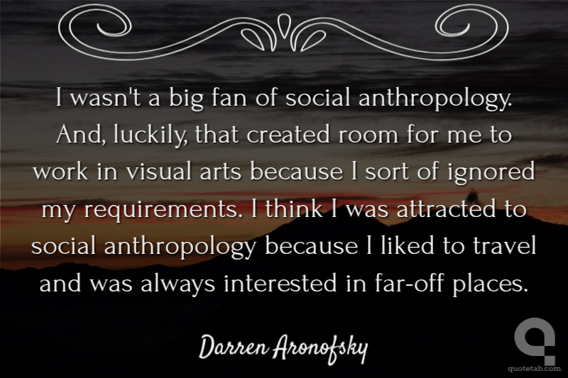 I wasn't a big fan of social anthropology. And, luckily, that created room for me to work in visual arts because I sort of ignored my requirements. I think I was attracted to social anthropology because I liked to travel and was always interested in far-off places.