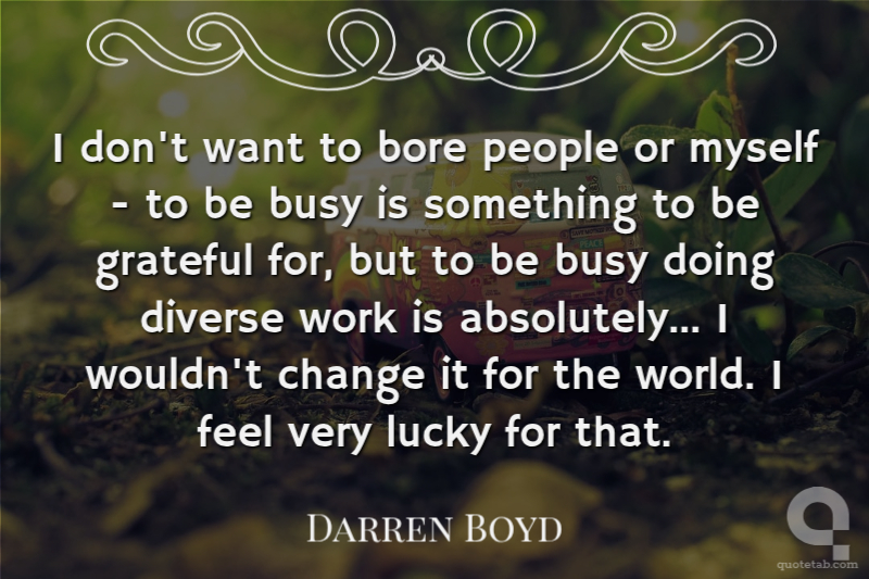 I don't want to bore people or myself - to be busy is something to be grateful for, but to be busy doing diverse work is absolutely... I wouldn't change it for the world. I feel very lucky for that.