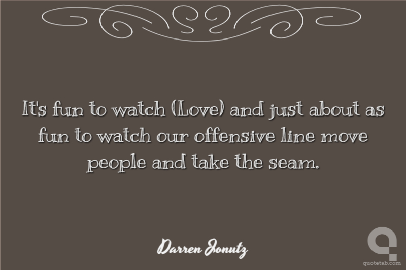 It's fun to watch (Love) and just about as fun to watch our offensive line move people and take the seam.