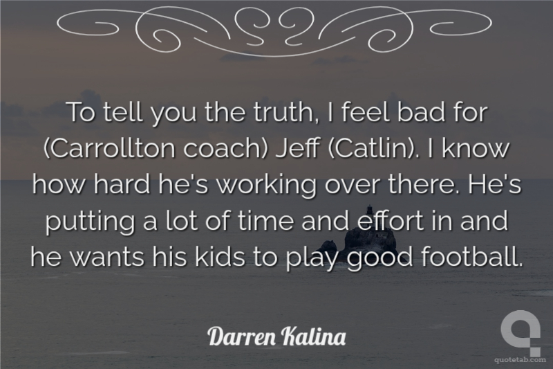 To tell you the truth, I feel bad for (Carrollton coach) Jeff (Catlin). I know how hard he's working over there. He's putting a lot of time and effort in and he wants his kids to play good football.