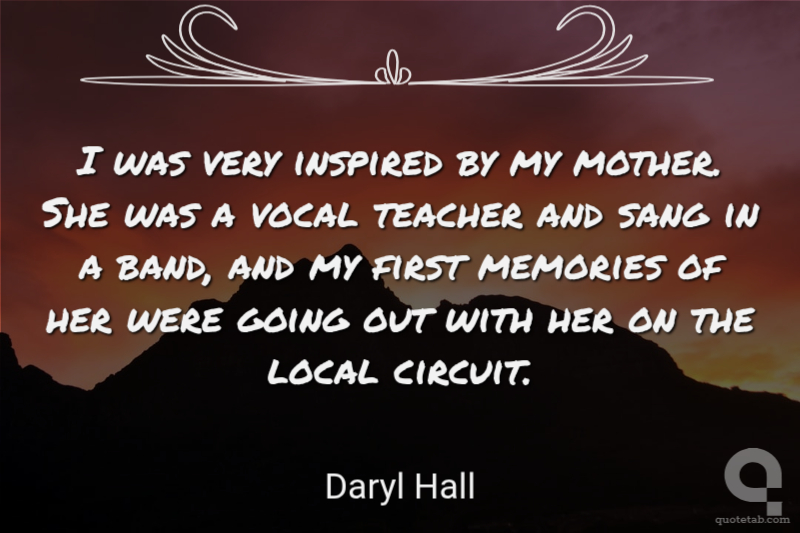 I was very inspired by my mother. She was a vocal teacher and sang in a band, and my first memories of her were going out with her on the local circuit.