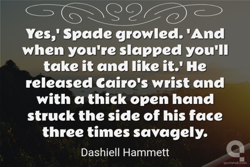 Yes,' Spade growled. 'And when you're slapped you'll take it and like it.' He released Cairo's wrist and with a thick open hand struck the side of his face three times savagely.